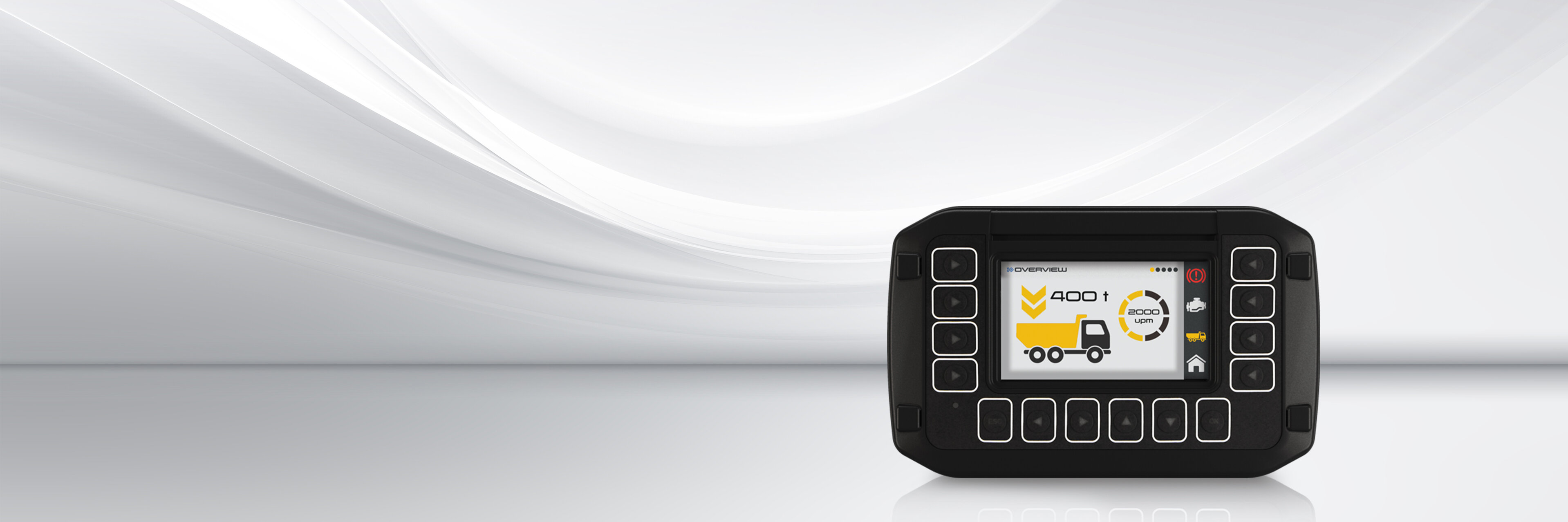 Dieses robuste Display wurde für den Einsatz in Fahrzeugen und Off-Highway-Maschinen entwickelt. Der programmierbare 4,3"-Farbbildschirm wird mit CODESYS 3.5 konfiguriert und bietet ein hohes Maß an Flexibilität für unterschiedlichste Einsatzbedingungen.